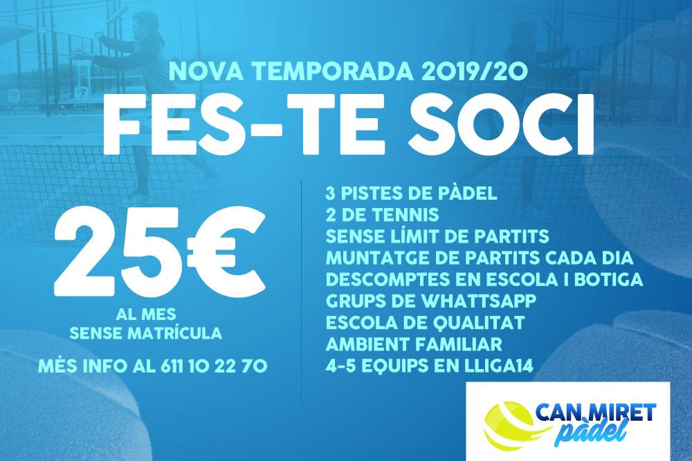 Fes-te soci! Per només 25€ al mes i sense matrícula!