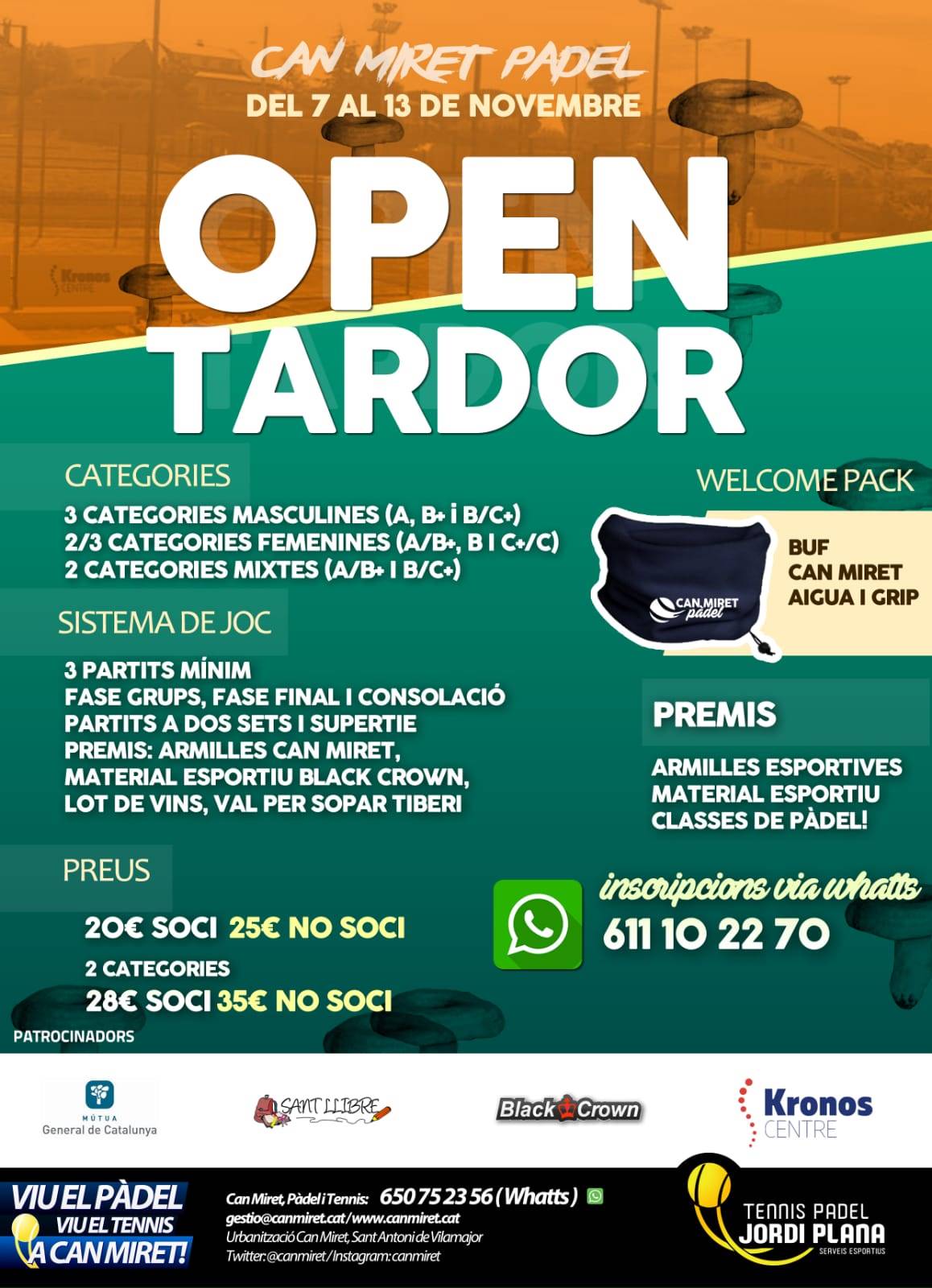 OPEN TARDOR: del 7 al 13 de Novembre!