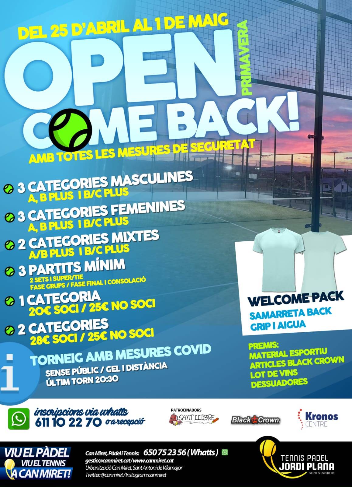 OPEN COME BACK PRIMAVERA: DEL 25 D'ABRIL A L'1 DE MAIG